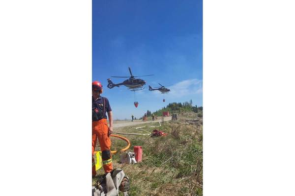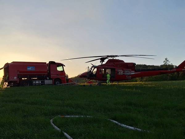 Mit sechs Hubschraubern führt man die Brandbekämpfung aus der Luft bis zum Einbruch der Dunkelheit fort.