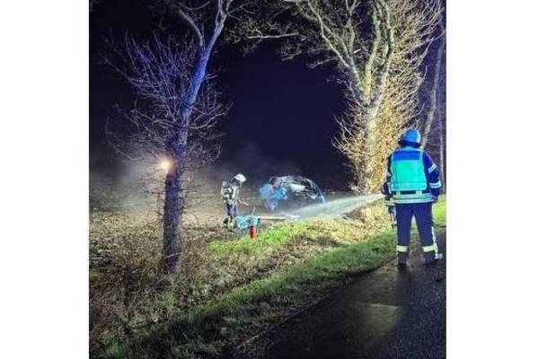 Nach der ersten Erkundung musste jedoch festgestellt werden, dass der 21-jährige Fahrer bereits in seinem Fahrzeug, vermutlich aufgrund der Wucht des Aufpralls, verstorben war. Aufgrund der Besonderheit, dass es sich bei dem Pkw um ein Elektrofahrzeug handelte, wurde umgehend die Brandbekämpfung durch einen Trupp unter Atemschutz eingeleitet.