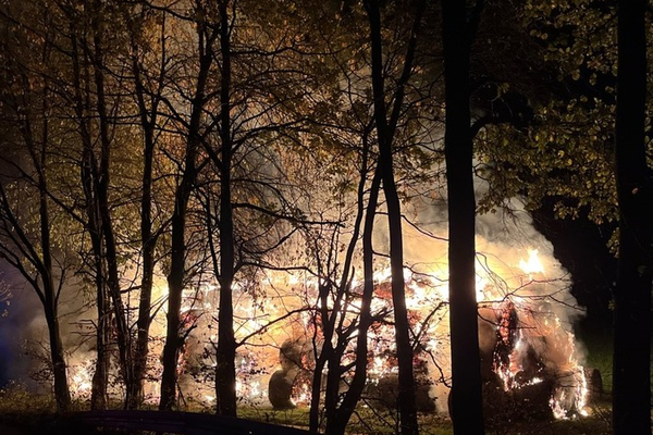 Eine aufmerksame Zeugin bemerkte am späten Mittwochabend (30. Oktober) gegen 23:30 Uhr, dass auf einem Feld zwischen der Schulstraße und der B55 in Anröchte-Mellrich zahlreiche Strohballen brennen. Einsatzkräfte der Polizei und der Feuerwehr eilten unmittelbar zum Brandort. Die Feuerwehr ließ die etwa 270 Strohballen kontrolliert abbrennen und sorgte dafür, dass die Flammen auf nicht umstehende Bäume übergreifen.