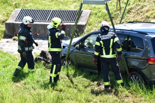 ARNREIT. Ein schwerer Crash hat sich Sonntagnachmittag in Arnreit (Bezirk Rohrbach) ereignet. In einem Kreuzungsbereich kollidierten zwei Fahrzeuge. Beide Autos wurden in ein Regenwasserrückhaltebecken geschleudert. Der Unfall ereignete sich im Kreuzungsbereich der Rohrbacher Straße mit der Iglmühlstraße in Arnreit. "Vier Verletzte forderte ein Verkehrsunfall am 13. Juni 2021 gegen 13:30 Uhr im Gemeindegebiet von Arnreit. Ein 61-Jähriger aus dem Bezirk Rohrbach lenkte dabei seinen PKW auf der Rohrbacher Straße Richtung Linz. Im Ortschaftsbereich von Getzing geriet er auf die Gegenfahrbahn, passierte eine Schutzinsel auf der linken Seite, fuhr auf eine Böschung und über die Fahrbahn der links einmündenden Iglmühlstraße. Zu diesem Zeitpunkt war ein mit seinem PKW einige Fahrzeuge davor fahrender 55-Jähriger aus dem Bezirk Rohrbach von der Rohrbacher Straße nach links in die Iglmühler Straße eingebogen. Es kam zur Kollision, bei der beide Autos in das rechts dort befindliche Revisionsbecken geschleudert wurden. Die beiden Lenker und die auf den jeweiligen Beifahrerseiten sitzenden Gattinnen, 56 beziehungsweise 49 Jahre alt, erlitten Verletzungen unbestimmten Grades und wurden ins Klinikum Rohrbach eingeliefert", so die Polizei. "Das Rote Kreuz versorgte bereits alle verletzten Personen als die Feuerwehren am Einsatzort eingetroffen sind", berichtet die Feuerwehr Rohrbach im Mühlkreis. Eingeklemmt war zum Glück niemand. Der Kreuzungsbereich war rund eine Stunde lang nur erschwert passierbar.