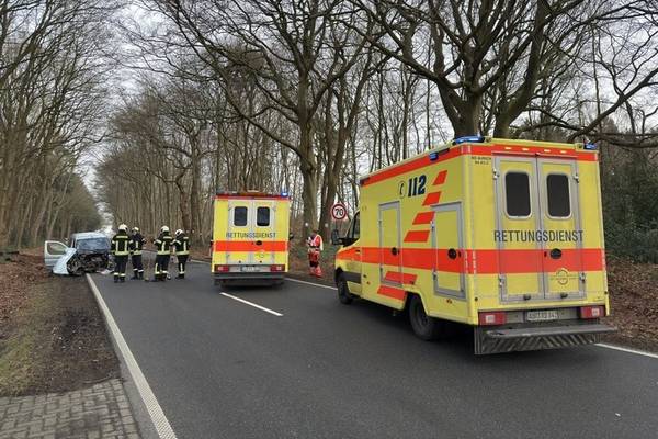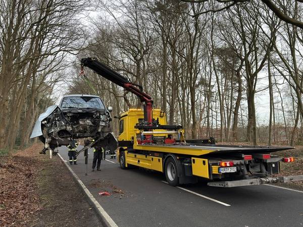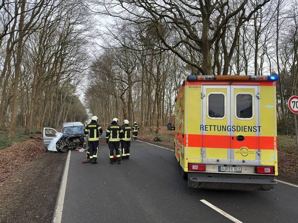 Kurz nach der Einmündung zur Ringstraße ist in den Mittwochmittagsstunden ein Auto von der Fahrbahn der Brockzeteler Straße abgekommen und mit einem Baum kollidiert. Während das Fahrzeug zurück auf die Straße schleuderte, wurde der Motorblock durch den heftigen Aufprall aus dem Wagen gerissen. Vorbeifahrende Verkehrsteilnehmer wählten umgehend den Notruf. Weil zu diesem Zeitpunkt noch nicht feststand, ob die beiden verletzten Insassen den PKW eigenständig verlassen würden, sind zusammen mit Rettungsdienst und Polizei auch gleich mehrere Auricher Feuerwehren sowie die Feuerwehr Ardorf aus dem benachbarten Landkreis Wittmund alarmiert worden.