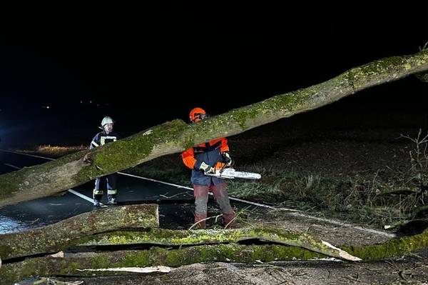 Der Baum wurde mithilfe einer Motorsäge zerkleinert und anschließend von der Fahrbahn entfernt. Im Anschluss reinigten die Einsatzkräfte die Straße von Ästen, Laub und weiterem Restmaterial, um die Verkehrssicherheit wiederherzustellen.