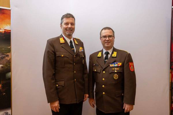 Karl-Heinz Greiner (FF Weikersdorf) wurde als Bezirksfeuerwehrkommandant, Norbert Schmidtberger (FF Wiener Neustadt) als Bezirksfeuerwehrkommandant-Stellvertreter in ihren Funktionen bestätigt.