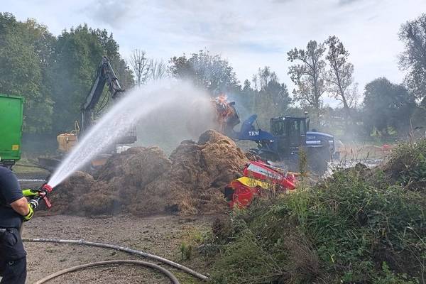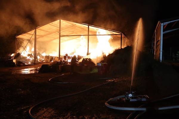 Die Feuerwehr Gangelt wurde heute Morgen um 5:23 Uhr zu einem Brandeinsatz in Breberen alarmiert. Bereits auf der Anfahrt war ein heller Feuerschein über dem Anwesen am Bredburplatz sichtbar. Auf einem landwirtschaftlichen Anwesen stand bei Eintreffen der Feuerwehr eine rund 20 x 25 Meter umfassende offene Strohhalle in Vollbrand. Da sich in unmittelbarere Nähe weitere Lagerhallen, eine Reithalle, Pferdeunterstände und Wohnhäuser befanden, fokussierten sich die ersten Maßnahmen der Einsatzleitung auf einen Schutz der umliegenden Gebäude. Gleichzeitig wurden weitere Einheiten der Feuerwehr Gangelt zur Einsatzstelle nachalarmiert. Gemeinsam gelang es ein Übergreifen des Feuers zu verhindern, die betroffene Strohhalle war jedoch nicht mehr zu retten. Bei den anfänglichen Löschversuchen wurde eine Person leicht verletzt und wurde durch den Rettungsdienst versorgt. Ein Transport durch den Rettungsdienst in eine Klinik war jedoch nicht notwendig. Bereits frühzeitig zeichnete sich eine längere Einsatzdauer ab. Aus diesem Grund wurden die Einsatzkräfte ausreichend mit Brötchen und Getränken verpflegt. Nach der akuten Gefahrenabwehr wurde der Großteil der Einsatzkräfte am Morgen durch die Bauhofstaffel der Feuerwehr Gangelt abgelöst. Die Feuerwehr Gangelt ist eine rein freiwillige Feuerwehr und für die meisten Einsatzkräfte startete nach dem Einsatz der reguläre Dienst im Job. Bei der Bauhofstaffel handelt es sich um Einsatzkräfte der Feuerwehr Gangelt, die hauptberuflich beim Bauhof der Gemeinde Gangelt beschäftigt sind. Durch den Einsatz der Bauhofstaffel konnte die Belastung für die anderen Arbeitgeber auf ein Minimum begrenzt werden. Nachdem der Brand deutlich an Energie verloren hatte, wurde gegen Mittag das Technische Hilfswerk zur Unterstützung angefordert. Ein Fahrer des THW räumte unter schwerem Atemschutz, mit einem Radlader des THW Eschweiler, das Stroh aus der Halle. Nach rund 13 Stunden Einsatzdauer war gegen 18:30 Uhr das Brandgut aus der Halle gefahren und auf einem nahe gelegenen Feld ausgebreitet. Die noch verbliebenen Brandnester wurden anschließend noch mit Schaum bedeckt, sodass gegen 18:40 Uhr der Einsatz beendet werden konnte. Insgesamt waren rund 60 Einsatzkräfte der Feuerwehr, des THW, der Polizei und des Rettungsdienstes unter der Leitung von Gemeindebrandinspektor Günter Paulzen im Einsatz.