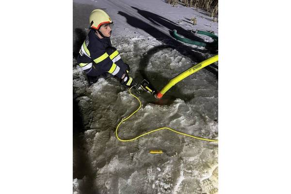 Vor Ort sorgten Temperaturen weit unter dem Gefrierpunkt für zusätzliche Hindernisse bei der Wasserversorgung. Um die Löschwasserversorgung sicherzustellen, musste ein nahegelegener Teich genutzt werden. Dieser war jedoch mit einer rund 20 Zentimeter dicken Eisschicht bedeckt, die von den Einsatzkräften händisch aufgehackt werden musste, um die Wasserversorgung sicherstellen zu können.