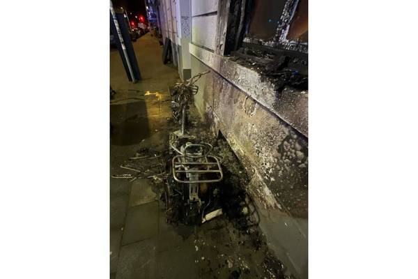 Gegen 4 Uhr war die Polizei wegen des brennenden Kleinkraftrads (ein 50-Kubik-Motorroller) vor einem Mehrfamilienhaus alarmiert worden. Das abgestellte Kleinkraftrad wurde durch den Brand vollkommen zerstört. Das Feuer beschädigte außerdem eine Fensterscheibe und Teile der Fassade des Gebäudes. Menschen wurden nicht verletzt.