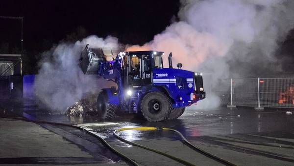 Da sich die Glutnester tief in den über 120 Tonnen Unrat befanden, wurde das Technische Hilfswerk (THW) mit 2 Radladern und weiterem schwerem Gerät hinzugezogen, um das Material auseinanderzuziehen und gezielt ablöschen zu können.