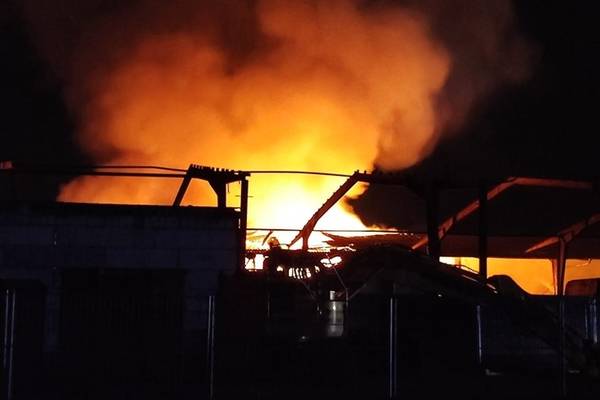 Beim Eintreffen der ersten Einsatzkräfte stand bereits ein erheblicher Bereich des rund 125 x 30 Meter großen Gebäudekomplexes in Vollbrand. Durch die enorme Hitzeentwicklung stürzten Teile des Daches ein. Das Industriegebiet wurde großräumig abgesperrt, während gleichzeitig eine Riegelstellung über mehrere Seiten errichtet wurde, um ein Übergreifen der Flammen auf angrenzende Hallenteile zu verhindern.