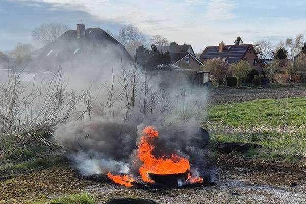 Anwohner der Straße Ostervordels stellten auf einem Siloplatz, auf einem Feld hinter ihrem Haus, eine starke unklare Rauchentwicklung fest und setzten daraufhin einen Notruf ab. Bei Ankunft der Feuerwehr fanden die Einsatzkräfte mehrere brennende Autoreifen vor. Umgehend wurde ein Angriffstrupp unter Atemschutz zur Brandbekämpfung eingesetzt und löschte den Brand. Abschließend konnte die Einsatzstelle an die Polizei übergeben werden und die Feuerwehr den Einsatz beenden.
