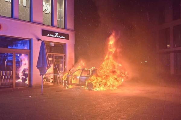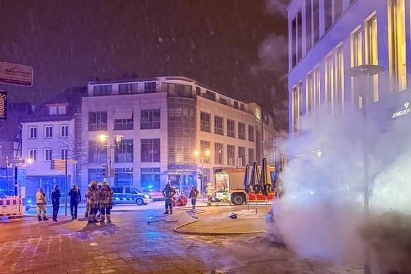 Aufgrund mehrerer eingehender Notrufe unterschieden sich die Angaben zur genauen Einsatzlage zunächst leicht. Vor Ort stellte sich schließlich heraus, dass ein Pkw vor einem Ladengeschäft gegenüber des gemeldeten Bekleidungsgeschäftes in voller Ausdehnung brannte.