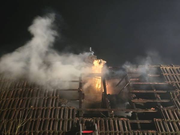 Am 10.02.2025 wurde die Feuerwehr Datteln um 3:58 Uhr, durch einen Anrufer der Feuerschein gesehen hatte, zur Castroper Straße alarmiert. In einem Hinterhof eines Sanitätbetriebes brannte ein anliegendes Gebäude im 1. OG in voller Ausdehnung. Die im Laufe der Jahre stattgefundenen Um- und Ausbaurbeiten an dem Gebäude erschwerten die effektiven Löschmaßnahmen, so dass erst nach etwa 4 Stunden "Feuer unter Kontrolle" gemeldet werden konnte. Auch die Situation des Hinterhofes ließ nur sehr begrenzt den Einsatz von tragbaren Leitern zu, die Drehleiter konnte zwar auf einem Nachbargundstück in Stellung gebracht werden, konnte jedoch nur Teilbereiche des Daches abdecken. Der zunächst durchgeführte Innenangriff musste bereits kurze Zeit später aufgrund massiver Einsturzgefahr der Decke abgebrochen werden. Im Laufe des Einsatzes stürzten dann auch Deckenbereiche aus dem Dachbereich ein. Das Feuer konnte somit nur durch mehrere Rohre im Außenangriff und unter Zuhilfenahme von Löschschaum bekämpft werden. Neben der Hauptwache waren 3 ehrenamtliche Löschzüge im Einsatz. Personen kamen nicht zu schaden, die Brandursachenermittlung obliegt der Polizei.