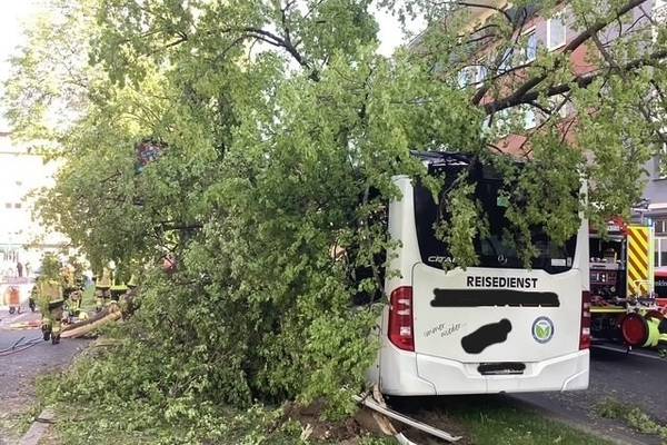 Gelsenkirchen (ots) - Am heutigen Vormittag gingen mehrere Notrufe in der Leitstelle der Feuerwehr Gelsenkirchen ein. Gemeldet wurde ein schwerer Verkehrsunfall mit einem Bus auf der De-la-Chevallerie-Straße. Beim Eintreffen der ersten Einsatzkräfte fanden diese einen Linienbus vor, der auf der Mittelinsel zum Stehen gekommen war. Der Bus hatte zuvor mehrere Bäume gestreift und teilweise entwurzelt. Die Fahrgäste hatten das Fahrzeug bereits verlassen und wurden durch den Rettungsdienst betreut. Aufgrund der Anzahl der Verletzten wurden zusätzlich Rettungsmittel aus dem Kreis Recklinghausen nachgefordert. Vier Fahrgäste wurden nach einer ersten medizinischen Untersuchung zur weiteren Abklärung in umliegende Krankenhäuser transportiert. Der Fahrer des Busses war im stark deformierten Fahrerbereich eingeklemmt. Er musste mit schwerem technischen Gerät aufwendig befreit werden. Anschließend wurde er schwer verletzt in ein Krankenhaus gebracht. Die Feuerwehr Gelsenkirchen war mit rund 40 Einsatzkräften vor Ort. Neben der technischen Rettung wurden die Unfallstelle abgesichert und die medizinische Versorgung aller Beteiligten sichergestellt. Die Polizei hat die Ermittlungen zur Unfallursache aufgenommen