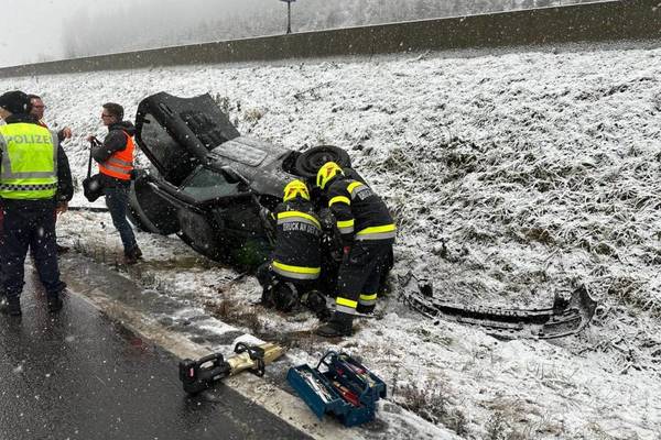 Die winterlichen Wetterverhältnisse fordern natürlich auch die Stadtfeuerwehr Bruck an der Mur. Ein Verkehrsunfall auf der S6 - das Fahrzeug hatte sich überschlagen und war seitlich neben der Straße zum Liegen gekommen - ging für den Fahrer Gott sei Dank glimpflich aus. Er blieb unverletzt.