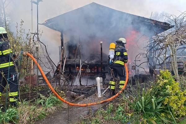Mehrere Anrufer*innen hatten der Integrierten Leitstelle ein brennendes Gartenhaus im Schrebergarten in der Görzer Straße gemeldet. Vor Ort konnte die Feuerwehr die Flammen dann rasch mit zwei Hohlstrahlrohren und dem Einsatz von vier Trupps unter Atemschutz ablöschen. Die Nachlöscharbeiten dauerten bis zum Mittag an.