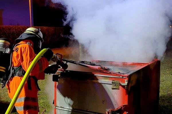 Im Ortsteil Markelfingen musste gegen 01:30 Uhr ebenfalls ein brennender Müllcontainer abgelöscht werden.