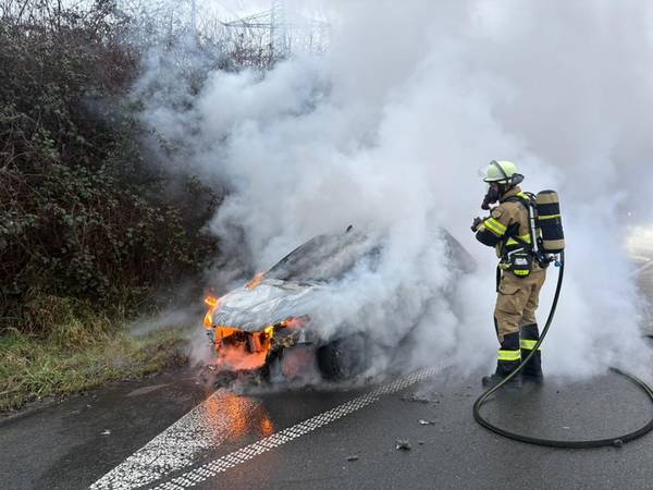 Beim Eintreffen der ersten Kräfte stand der PKW bereits im Bereich des Motorraums in Flammen, die auf den Frontbereich des Fahrzeugs übergegriffen hatten. Eine starke Rauchentwicklung war über mehrere Fahrspuren hinweg sichtbar. Unverzüglich wurde durch ein Team unter Atemschutz die Brandbekämpfung mittels Schnellangriff eingeleitet. Parallel erfolgte die Absicherung der Einsatzstelle gegen den fließenden Verkehr. Durch das schnelle Eingreifen konnte das Feuer zügig unter Kontrolle gebracht und eine weitere Ausbreitung verhindert werden.