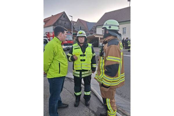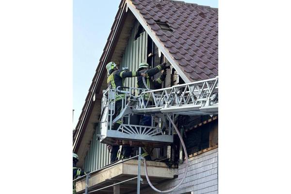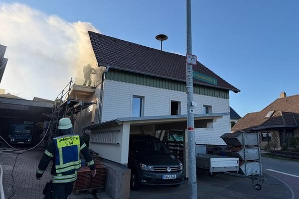 Calw (ots) - Schömberg-Oberlengenhardt. Aus bislang unbekannten Gründen hatte sich am Mittabend, 22. April unter dem Giebel an der Fassade des Bürogebäudes einer Schreinerei in Oberlengenhardt ein Feuer entwickelt. Just zu diesem Zeitpunkt im benachbarten Feuerwehrmagazin anwesende Brandschutzkräfte entdeckten dieses und lösten um 19:05 Uhr Alarm aus. "Das beherzte Eingreifen der Kameraden verhinderte einen Großbrand", konstatierte Einsatzleiter Rainer Zillinger, dass auch keine Personen verletzt wurden. Der Kommandant beschrieb eine unheilvolle Dynamik des aufsteigenden Rauchs, die er selbst auf der Anfahrt zum Einsatzort beobachtete. Da dieser bereits durch die Dachziegel nach außen drang, aktivierte er zusätzlich die Drohnengruppe aus Bieselsberg. Parallel zum Löschangriff, auch über die Drehleiter veranlasste der Einsatzleiter die Trennung des Gebäudes vom Strom sowie die Beseitigung von Elektrogeräten im Gebäudeinneren. "Das Feuer hatte sich den Weg hinter die Verschalung der Fassade gesucht, wo dann verbaute Holzweichfaserplatten mit dem Löschwasser reagierten und ein Ausbreiten der Flammen verhindert wurde", fasste Zillinger das Eindämmen des Brandes zusammen. Durch den Einsatz der Drohne konnte die Feuerwehr zudem auf das Abdecken des Daches verzichten, da die Bilder keinen Gefahrenbereich mit erhöhten Temperaturen oder Flammenbewegung aufwiesen. Davon überzeugten sich vor Ort am Bildschirm der Übertragung unter anderem Kreisbrandmeister Bernd Meyer und sein Stellvertreter Tido Lüdtke sowie Schömbergs Bürgermeister Dr. Matthias Stepan. Das umsichtige Vorgehen der Brandschutzkräfte begrenzte den Sachschaden auf rund 20.000 Euro, zumal im Gebäudeinneren kein Wasserschaden festzustellen war. Nach rund zwei Stunden konnte der Einsatz beendet werden, wenngleich die Feuerwehrabteilung Oberlengenhardt noch Brandwache hielt.