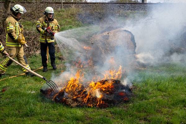 Bei Eintreffen der Einsatzkräfte bestätigte sich die gemeldete Lage: Zwei Rundballen waren in Brand geraten. Die Einsatzkräfte begannen umgehend mit der Brandbekämpfung. Mit dem Schnellangriffsrohr des Hilfeleistungslöschfahrzeugs (HLF) sowie zwei Dunghaken, mit denen die brennenden Ballen auseinandergezogen wurden, konnte das Feuer rasch unter Kontrolle gebracht werden.