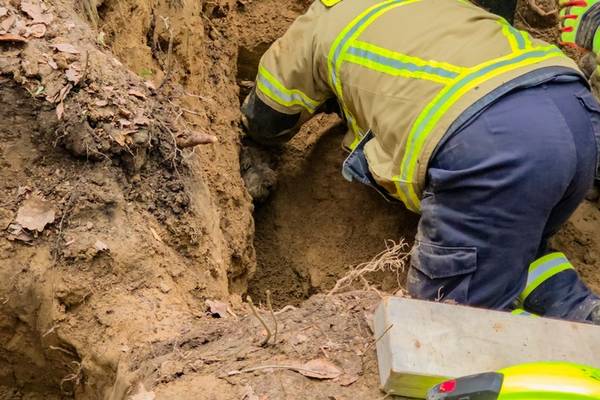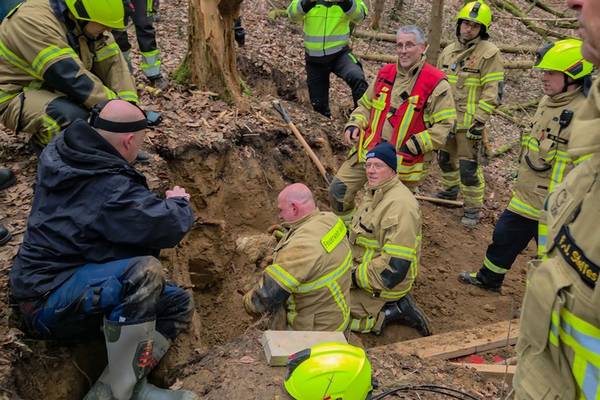 Am nächsten Tag (13.03.2026) setzen die Tierretter erneut ihre Suchhunde ein, um nach dem verschwundenen Hund zu suchen. Nach einiger Zeit schlugen die Hunde am Eingang eines alten Fuchsbaus an und aus diesem war auch ein leises Winseln zu hören. Daraufhin alarmierten die Tierretter gegen 11:30 Uhr die Feuerwehr Wachtberg.