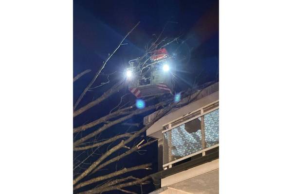 Die alarmierten Einsatzkräfte der hauptamtlichen Wache erkundeten zunächst die Lage und führten erste Entlastungssägearbeiten in der Baumkrone mithilfe der Drehleiter durch. Aufgrund der rückwärtigen Lage des Baumes und der fehlenden Erreichbarkeit für Großfahrzeuge wurde ein Fachberater des Technischen Hilfswerks zur weiteren Beurteilung der Situation hinzugezogen. Zusätzlich rückten Kräfte des Löschzuges Nord zur Einsatzstelle aus.