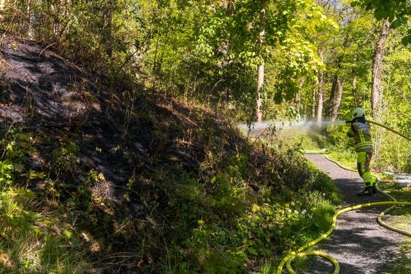 Da sich das Feuer beim Eintreffen der ersten Einsatzkräfte in Richtung Hardtstraße ausgebreitet hat, wurde die Löschgruppe Stadtmitte der Freiwilligen Feuerwehr nachalarmiert. Durch die Berufsfeuerwehr wurden 3 C-Rohre zum Löschangriff eingesetzt, sowie im Anschluss 3 Trupps durch die Freiwillige Feuerwehr zum Umgraben des Waldbodens.