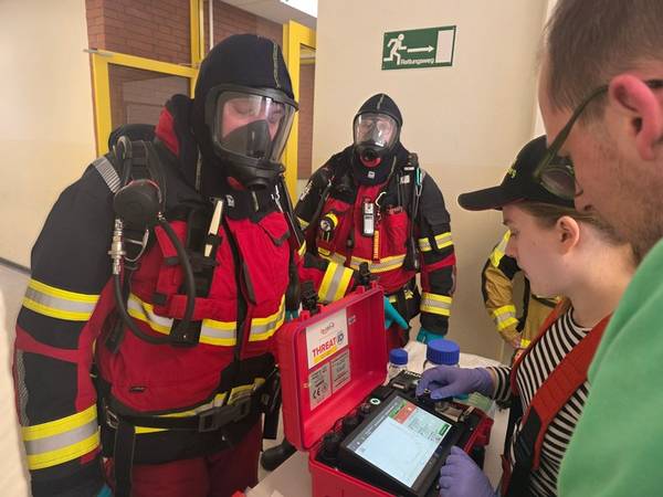 Zur weiteren Unterstützung wurde der ABC-Zug des Kreises Segeberg hinzugezogen, der mit umfangreicher moderner Messtechnik zahlreiche Bereiche sowie Gegenstände aus dem Klassenraum beprobte und anschließend analysierte.