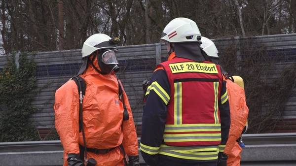 Zunächst wurde von der Leitstelle gemeldet, dass Gefahrstoffe austreten könnten. Nachdem die ersten Einsatzkräfte an der Einsatzstelle eingetroffen waren, wurden umgehend Schutzanzüge der Sicherheitsstufe 2 angelegt. Zwei Trupps unter Atemschutz wurden zur Erkundung vorgeschickt. Für die Einsatzkräfte galt zunächst höchste Vorsicht, da der genaue Stoff unbekannt war.