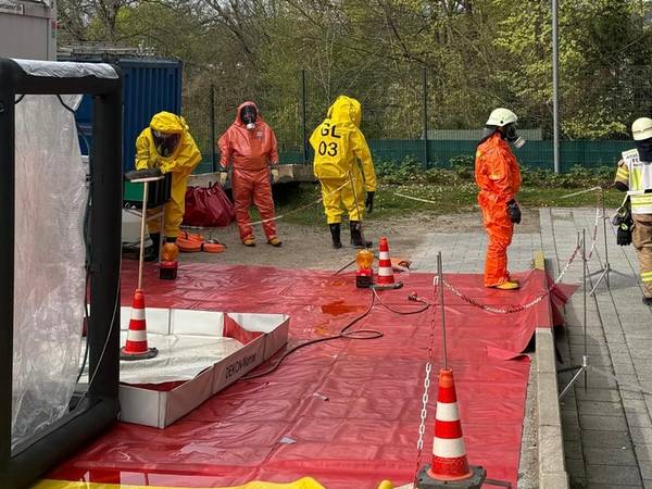 Die eingesetzten Kräfte arbeiteten unter entsprechenden Schutzmaßnahmen. Im Anschluss wurden die Einsatzkräfte über einen eingerichteten Dekontaminationsplatz geführt und entsprechend gereinigt.