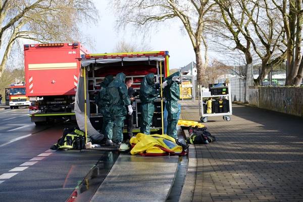 Die Personen wurden durch die Feuerwehr dekontaminiert und anschließend durch den Rettungsdienst behandelt und in ein Krankenhaus transportiert. Die weiteren Personen, die sich in der Halle befanden wurden ebenfalls durch die Feuerwehr und den Rettungsdienst gesichtet, waren aber unverletzt.