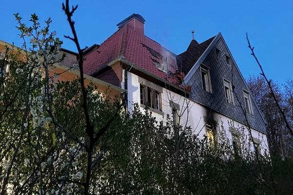 Bei Eintreffen der Feuerwehr wurde ein ausgedehnter Brand im 1. OG des Gebäudes festgestellt.