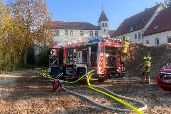 Obwohl die Maßnahmen der Feuerwehr recht schnell ihre Wirkung entfalteten, hatte sich der Brand in der hölzernen Zwischendecke und im Dachstuhl ausgebreitet, so dass diese Bereiche umfangreich geöffnet und abgelöscht werden mussten.