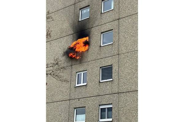 Im dritten Stock eines Mehrparteienwohnhauses war es aus noch unbekannter Ursache zu einem ausgedehnten Wohnungsbrand gekommen. Bei Eintreffen der Einsatzkräfte schlugen bereits meterhohe Flammen aus den Fenstern und dem Balkon der Wohnung. Zu diesem Zeitpunkt drohte der Brand bereits auf darüberliegende Wohnungen und die Fassade überzugreifen.