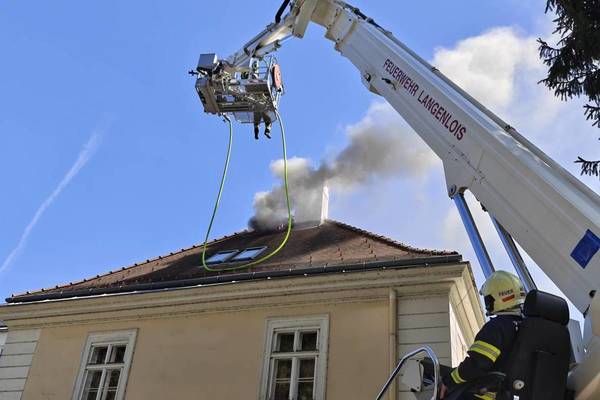 Parallel zu den Arbeiten im Innenbereich starteten die Einsatzkräfte auch einen Außenangriff. Um von beiden Seiten gleichzeitig vorgehen zu können, ließ der Einsatzleiter die Feuerwehr Langenlois mit dem Hubrettungsgerät nachalarmieren. Im Zuge der Brandbekämpfung kam es einer Durchzündung, wobei sich das Feuer breitet rasch über das gesamte Geschoss ausbreitete. Ein Atemschutztrupp konnte sich hier rechtzeitig in Sicherheit bringen.
