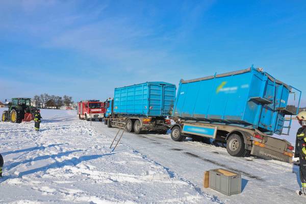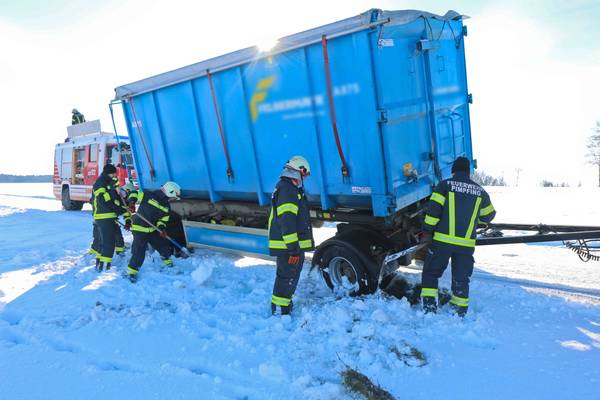 Am 27. Jänner 2021 wurde die Feuerwehren Pimpfing bereits den zweiten Tag infolge von der oberösterreichischen Landeswarnzentrale zu einem Einsatz gerufen. Ein Hängerzug kam auf dem Güterweg Stolln aufgrund der glatten Fahrbahn von der Straße ab und blieb im angrenzenden Feld stecken. Die beiden ausgerückten Feuerwehren Pimpfing und Andorf mussten daraufhin den Hängerzug mithilfe einer Seilwinde aus dem Straßengraben ziehen, wobei parallel der zu kippen drohende Hänger mit einer weiteren Seilwinde gesichert wurde.