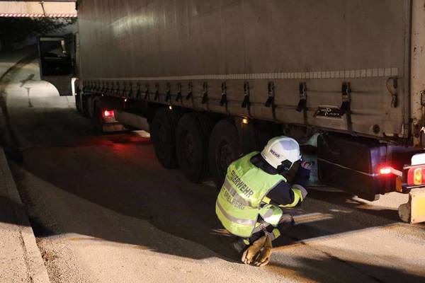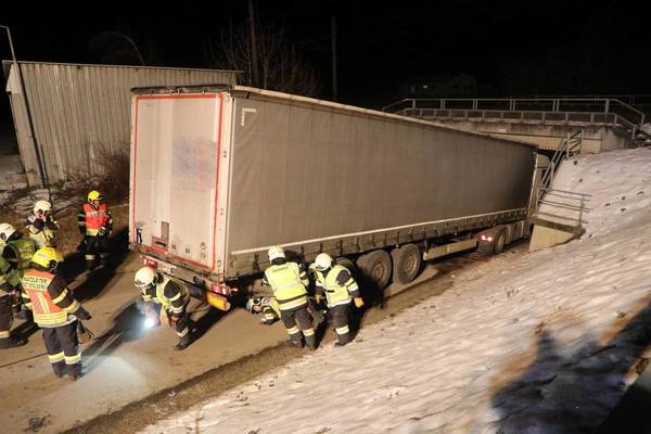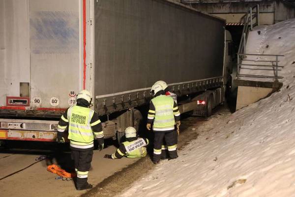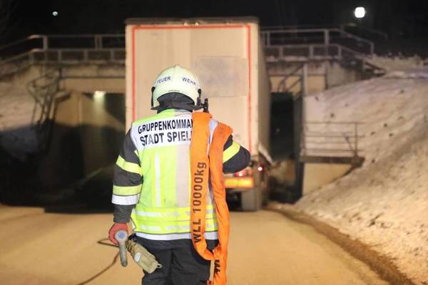 Als gegen 20:00 Uhr der Lenker zu seiner Ladestelle durch eine Unterführung fahren wollte, konnte dieser den LKW wenige Zentimeter vor der drei Meter hohen Eisenbahnunterführung zum Stillstand bringen und somit eine Kollision verhindern. Dennoch gelang es ihm nicht, auf der abschüssigen Straße wieder retour zu fahren.