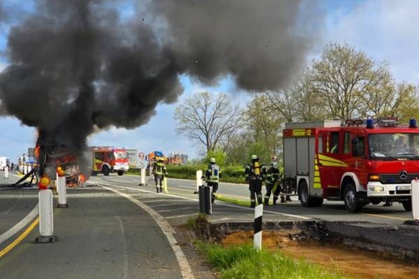 Insgesamt waren 35 Einsatzkräfte mit sieben Fahrzeugen, der Rettungsdienst sowie die Autobahnpolizei im Einsatz. Für die Dauer der Lösch- und Aufräumarbeiten musste die Autobahn voll gesperrt werden, wodurch sich ein kilometerlanger Rückstau bildete.