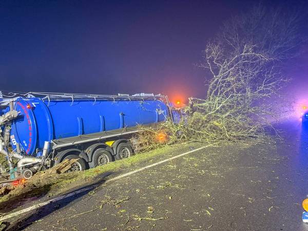 Auf der Bundesstraße 214, zwischen der Abfahrt nach Wathlingen und dem örtlichen Hotel, war ein Tanklastzug von der Straße abgekommen und im Seitengraben zum Stehen gekommen. Der auf Abwege geratene LKW kollidierte hierbei mit einem Straßenbaum, der daraufhin umstürzte und auf die Fahrbahn ragte. Der Fahrer des LKW blieb hierbei unverletzt. Eine Lageerkundung ergab, dass an dem verunfallten Tanklastzug keine Betriebsstoffe ausliefen und der Tank unbeschädigt blieb.