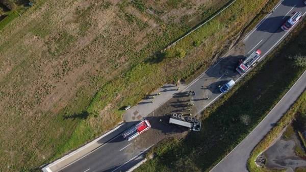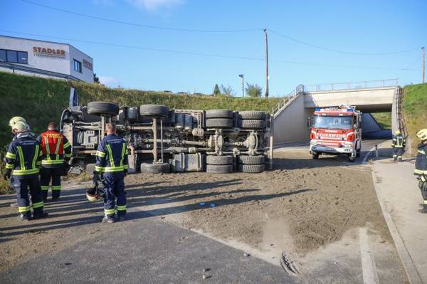 FRAHAM. Ein schwerer LKW-Unfall hat sich Mittwochvormittag auf der B129 Eferdinger Straße bei Fraham (Bezirk Eferding) ereignet. Ein mit Betonschotter beladener LKW ist umgestürzt. Der Unfall ereignete sich Mittwochvormittag auf der B129 Eferdinger Straße im Bereich einer Unterführung im Gemeindegebiet von Fraham. Der LKW ist offenbar zuerst rechts von der Fahrbahn abgekommen, hat die Böschung touchiert und überschlug sich in weiterer Folge. Der LKW kam in seitliche Lage auf der Fahrbahn zum Stillstand. Der Lenker war anfangs im Fahrzeug eingeschlossen, konnte aber rasch befreit werden. Er wurde vom Rettungsdienst und Notarzt erstversorgt und ins Krankenhaus gebracht. Die Einsatzkräfte zweier Feuerwehren standen in weiterer Folge bei den Aufräumarbeiten im Einsatz. Das betroffene Unternehmen sowie eine Kehrmaschine kamen dabei zum Einsatz. Die B129 Eferdinger Straße ist derzeit zwischen Fraham und Eferding für den Verkehr gesperrt. Die Polizei leitet die Fahrzeuge um.