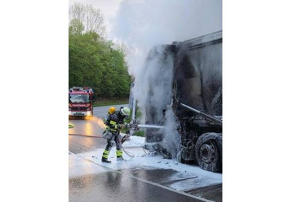 Während der Löscharbeiten musste die Auffahrt vorübergehend vollständig gesperrt werden.