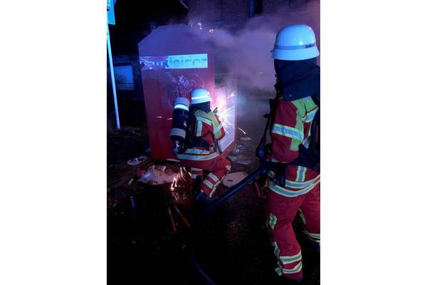 Die Feuerwehr Minden konnte trotz einiger Einsätze im Rettungsdienst und Brandschutz einen insges ruhigen Jahreswechsel 2025/2026 verzeichnen. Die Abarbeitung der Einsätze verlief ohne besondere Auffälligkeiten oder direktes zielen mit Feuerwerkskörpern auf Einsatzkräfte bzw. Einsatzfahrzeuge. Der Löschzug der Berufsfeuerwehr sowie die Einheiten Dützen und Stadtmitte der Freiwilligen Feuerwehr rücketen in der Silvesternacht insgesamt 10 mal aus. Achtmal handelte es sich hierbei um Kleinbrände von brennenden Feuerwerksresten, Nachlöscharbeiten von brennenden (Rest-)Mülltonnen sowie in einem Fall von mutmaßlich durch Feuerwerkskörper entfachter Vegetation an der Stiftsallee. Größeren Aufwandes bedurfte es hierbei bei einem Brnad eines Altkleidercontainers an der Feldstraße: für eine effektive Brandbekämpfung musste das Schloss des Behälters zunächst mit einem Trennschleifer geöffnet werden (Bilder im Anhang). Am Container entstand durch den Brand ein erheblicher Sachsachden. In zwei Fällen konnte das schnelle Eingreifen der Feuerwehr jedoch schlimmeres verhindern: Am Mittelweg setzte vermutlich eine verirrte Silvesterrakete um kurz nach 0 Uhr Gegenstände auf einem Balkon im zweiten Obergeschoss eines Mehrfamilienhauses in Brand. Im weiteren Verlauf der Nacht brannte eine Mülltonne an der Hausfassade stehend im Ortsteil Bärenkämpen. Ein Übergriff auf die Gebäudestruktur konnte jeweils verhindert werden, sodass nur geringer Sachschaden entstand und die Einsätze rasch beendet waren. Verletzt wurde niemand. Im Rettungsdienst waren ab 23:00 Uhr des 31.12.25 bis früh in die Morgenstunden 16 Rettungswageneinsätze und zwei Krankentransporte zu verzeichnen. Dreimal wurde das Notarzteinsatzfahrzeug an einer Einsatzstelle benötigt. Nur rund ein drittel der Einsätze Stand im Zusammenhang mit Silvesterfeierlichkeiten. Verletzungen durch Feuerwerkskörper lagen (zum Glück) keine vor.
