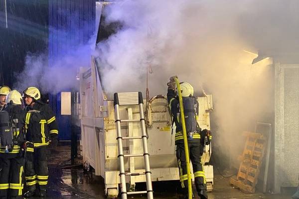Heute Nacht wurde die Feuerwehr Iserlohn um 0:27 Uhr zu einer brennenden Müllpresse an der Eissporthalle am Seilersee gerufen. Die Einsatzkräfte leiteten eine Brandbekämpfung mit einem C-Rohr ein und brachten den Brand unter Kontrolle. Um das Feuer im Innern der Müllpresse letztendlich ablöschen zu können, forderten die Kräfte ein Wechselladerfahrzeug (WLF) nach. Mit dem WLF konnte die Presse versetzt, geöffnet und entleert werden. Der Abfall wurde anschließend auseinandergezogen und abgelöscht. Dabei wurde auch Schaummittel eingesetzt. Im Einsatz befand sich die Berufsfeuerwehr mit dem Löschzug. Die ebenfalls alarmierte Löschgruppe Stadtmitte brauchte nicht mehr ausrücken und blieb im Gerätehaus in Bereitschaft. Gegen 1:30 Uhr konnte die Feuerwehr den Einsatz beenden.