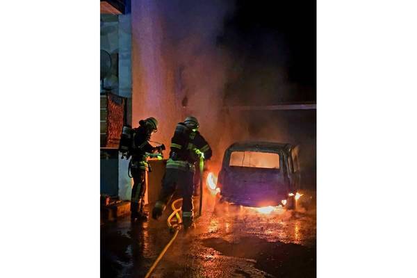 Beim Eintreffen der Einsatzkräfte konnte ein im Eingangsbereich eines Anwesens abgestellter PKW in Vollbrand festgestellt werden. Umgehend wurde ein Atemschutztrupp zur Brandbekämpfung eingesetzt, der das Fahrzeug zügig ablöschte.