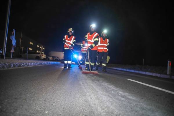 HOLZHAUSEN/HÖRSCHING/MARCHTRENK/KIRCHBERG-THENING/OFTERING. Eine rund neun Kilometer lange Ölspur beschäftigte am Mittwochabend Einsatzkräfte von gleich sieben Feuerwehren in den Bezirken Linz-Land beziehungsweise Wels-Land. Die Ölspur erstreckte sich ersten Angaben nach von der Ortschaft Breitbrunn in Hörsching (Bezirk Linz-Land) bis Marchtrenk (Bezirk Wels-Land). Stellenweise waren Bindemaßnahmen erforderlich, die von den Einsatzkräften durchgeführt wurden.