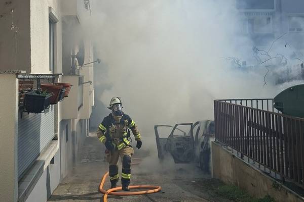 Im Hinterhof eines Mehrfamilienhauses im Stuttgarter Westen kam es zum Brand eines abgestellten Pkws. Ein weiterer Pkw sowie mehrere Mülltonnen wurden durch den Brand in Mitleidenschaft gezogen. Durch die starke Rauch- und Hitzeentwicklung bestand darüber hinaus die Gefahr des Übergreifens auf das benachbarte Haus.