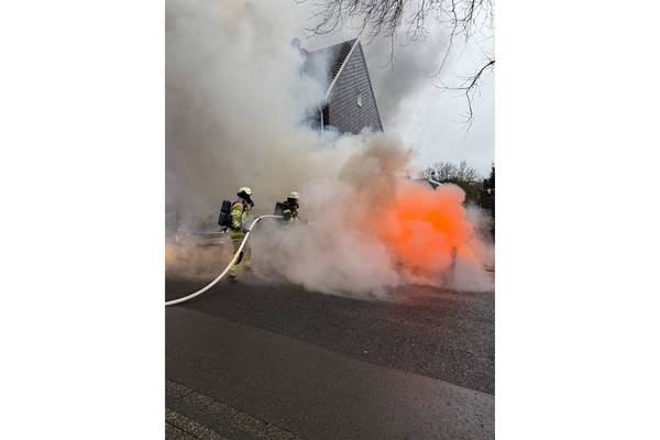 Beim Eintreffen der Einsatzkräfte stand das Fahrzeug bereits in Vollbrand. Umgehend wurde die Brandbekämpfung eingeleitet.
