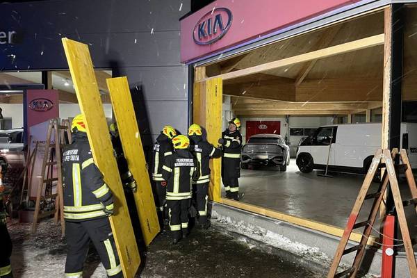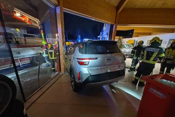 Durch die eintreffenden Feuerwehrkräfte wurde die Einsatzstelle abgesichert und ausgeleuchtet. Nach Freigabe der Unfallstelle durch die Polizei wurden Glasteile von der Fassade entfernt, um Verletzungen der Mannschaft während der Bergungsarbeiten zu verhindern. Anschließend wurde das Fahrzeug des Unfallverursachers mittels Ladekran weggehoben und am Firmenareal gesichert abgestellt. Anschließend wurde der zweite Wagen - ein Opel - auf der Vorderachse mittels Ladekran etwas herausgehoben. Nach Auflegen zweier Rampen konnte der Firmenbesitzer mit dem Wagen aus dem Schauraum herausfahren. Die beiden weiteren beschädigten Neuwagen wurden voneinander getrennt und im Schauraum belassen.