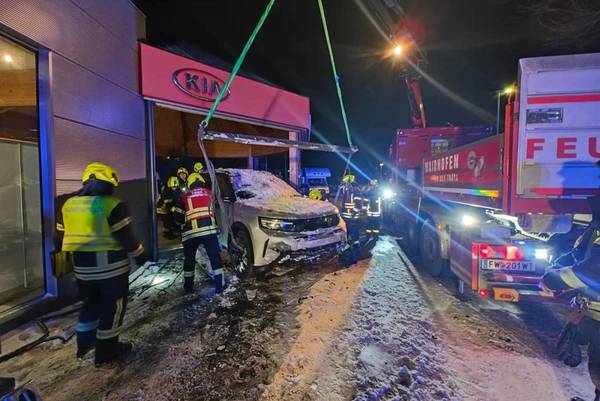 Der Lenker eines Kia EV6 war auf der Thayastraße stadteinwärts unterwegs. Eigenen Angaben nach kam er bei winterlichen Fahrverhältnissen in einer Rechtskurve ins Rutschen. Trotz Bremsen rutschte der Wagen weiter und krachte zuerst gegen einen Randstein einer Verkehrsinsel. Daraufhin rutschte der Wagen weiter und krachte frontal gegen einen geparkten Wagen vor einer PKW-Fachwerkstätte. Dieser Wagen wurde durch die Wucht des Aufpralls rückwärts durch ein Schaufenster geschleudert und krachte gegen einen im Schauraum stehenden Neuwagen. Dieser wiederum wurde ebenfalls gegen einen weiteren Neuwagen geschleudert. Endergebnis: Keine Verletzten - vier zum Teil schwer beschädigte Fahrzeuge.