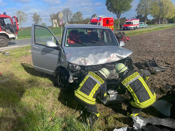 Im Kreuzungsbereich Wegholmer Straße/Südfelder Straße kam es zu einem Verkehrsunfall mit zwei beteiligten Fahrzeugen. Ein PKW kam nach dem Zusammenstoß auf einem angrenzenden Feld auf dem Dach zum liegen. Alle beteiligten Personen konnten ihre Fahrzeuge selbstständig verlassen und wurden durch den Rettungsdienst versorgt. Nach rund 45 Minuten konnte die Feuerwehr die Einsatzstelle verlassen. Es waren die Löschgruppen Friedewalde, Südfelde, Meßlingen und Lahde im Einsatz.