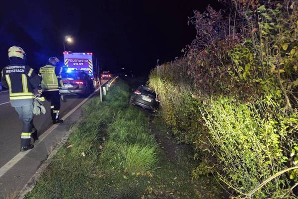 Am Abend des 26.10.2025 wurde die FF Weistrach zu einem PKW im Graben auf die LH 85 alarmiert. Bei der Lageerkundung stellte sich heraus, dass ein Lenker geradeaus über den Weistracher Kreisverkehr fuhr und rechts der Leitschiene zum Stillstand kam. Die Florianis leuchteten die Unfallstelle aus und reinigten die Fahrbahn. Zum Glück überfuhr der Lenker lediglich die Büsche und Verkehrsschilder und nicht die in der Mitte befindliche Steinskulptur.