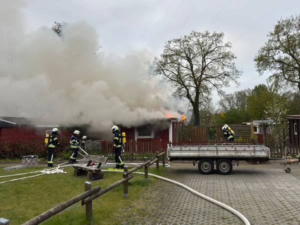 Aurich-Popens (ots) - Auf dem Gelände eines Kleingartenvereins ist am Samstagmorgen eine Holzlaube durch ein Feuer in Gänze zerstört worden. Ein Anwohner war gegen 06:50 Uhr auf die Rauchentwicklung am Husteder Weg aufmerksam geworden. Die Wittmunder Regionalleitstelle alarmierte daraufhin die Feuerwehren Wallinghausen und Aurich. Als die Einsatzkräfte vor Ort eintrafen, stand die Parzelle bereits in Vollbrand. Personen hielten sich zu diesem Zeitpunkt nicht auf dem Gelände auf. Atemschutzgeräteträger gingen unter Vornahme zweier Strahlrohre umgehend zur Bekämpfung des Feuers vor.